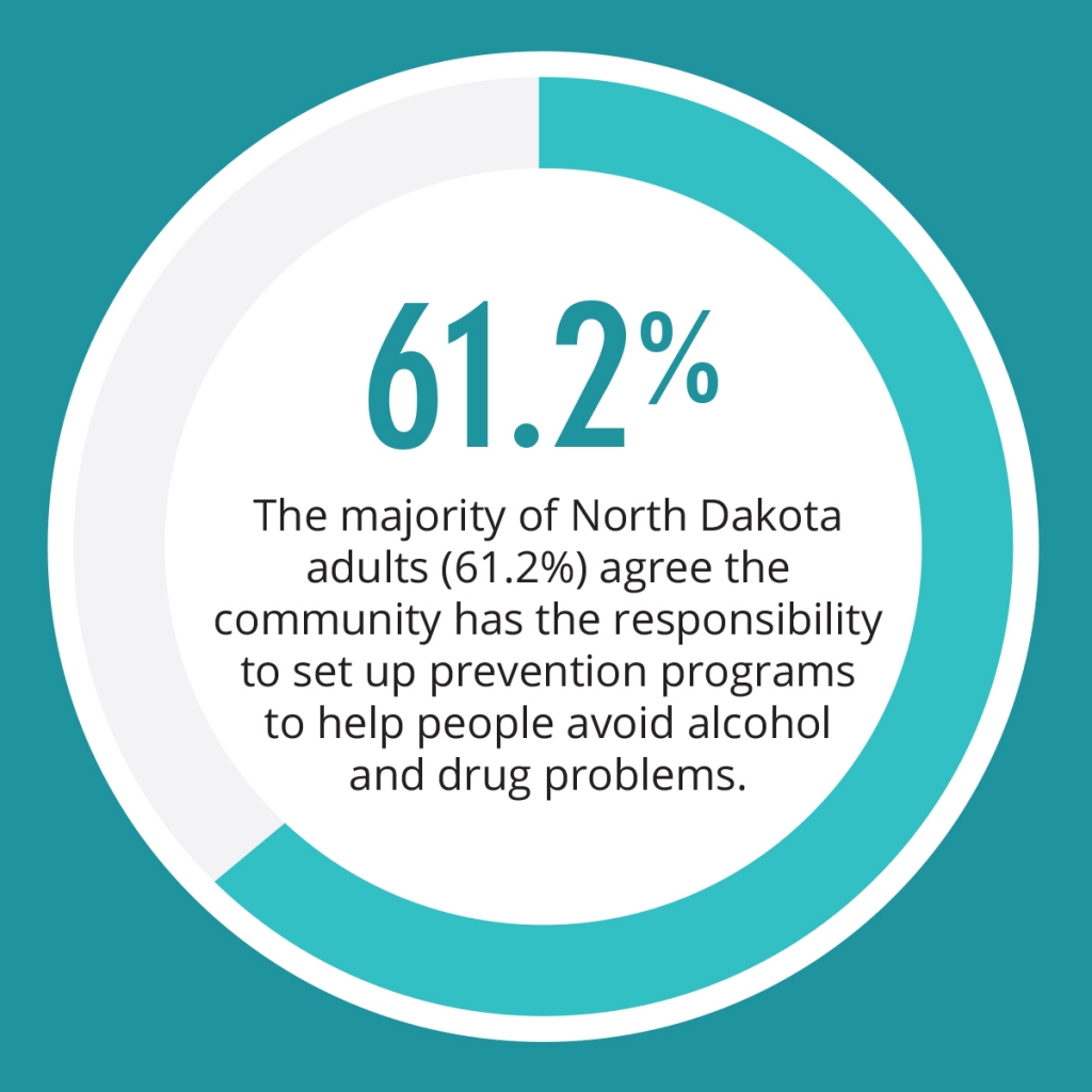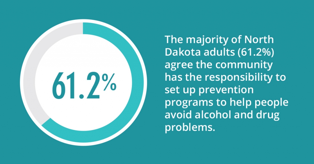 The majority of North Dakota adults (61.2%) agree the community has the responsibility to set up prevention programs to help people avoid alcohol and drug problems.